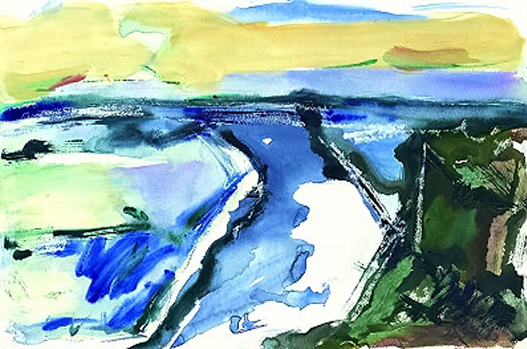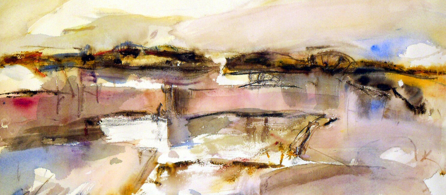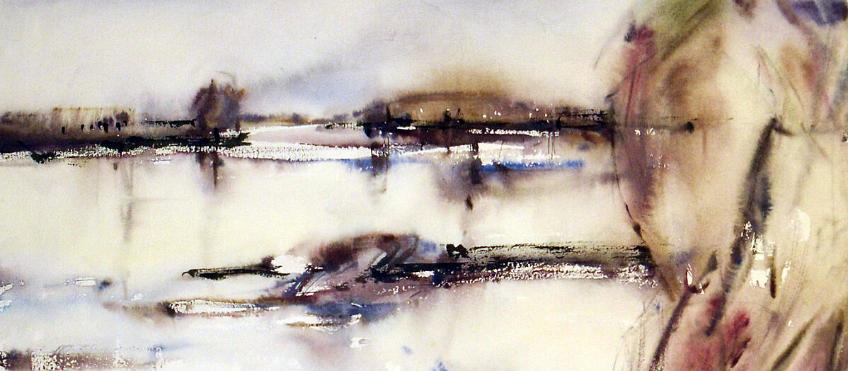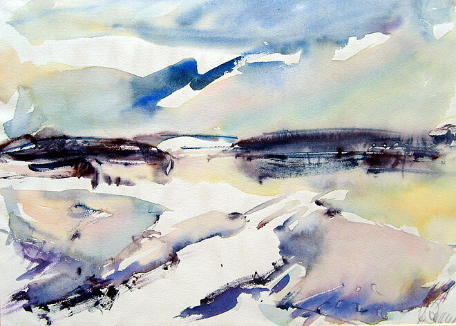 "Vom Licht, eingefangen in einer Wolke, schwebend auf einer sparsam besetzten Farbpalette zurückhaltender Brillanz, lebt das Aquarell „Wolke und Erde“. Mit meisterlichem Verständnis für das Verhalten der Farben zueinander, die Verbindungen eingehen, wie sie es will, entstand eine Aussage von großer Noblesse. Das gesehene in der Natur ist intensiviert auf das Blatt gebracht, die Grenzen zwischen Natur und Bild sind gefunden…“